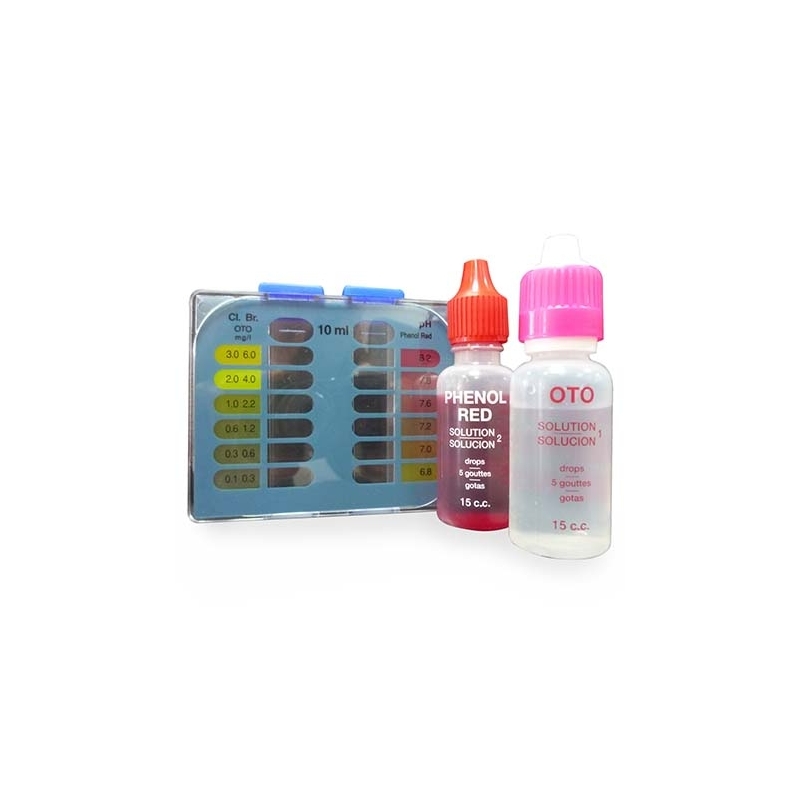 Test kit με υγρά διαλύματα για χλώpιο, βρώμιο και pH.