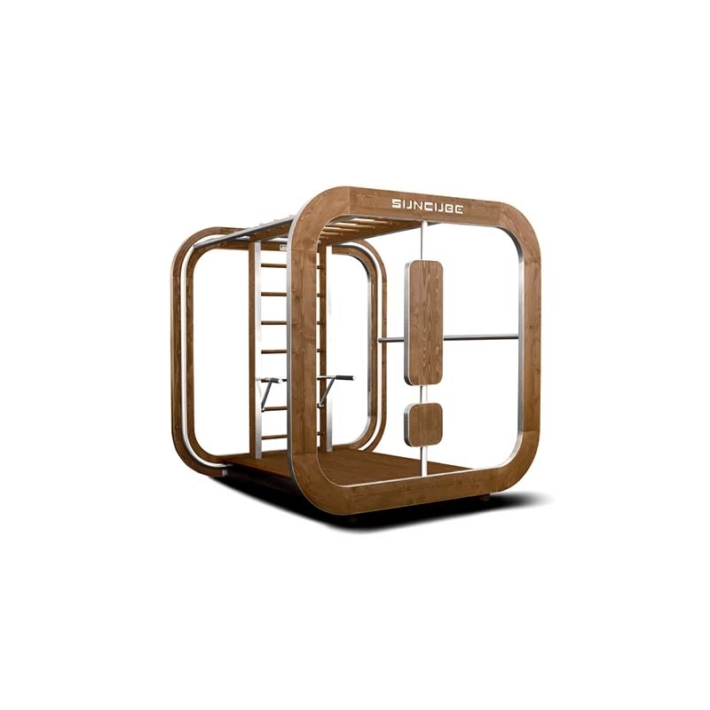 Το GymCube είναι ένα κομψό υπαίθριο γυμναστήριο φτιαγμένο για ασκήσεις καλισθενικής. Ο σχεδιασμός και τα χρώματά του ταιριάζουν τέλεια με άλλα προϊόντα SunCube – ανακατέψτε τα και ταιριάξτε τα για να δημιουργήσετε ένα μοναδικό σετ για τις τέλειες υπαίθριες συνεδρίες προπόνησης και χαλάρωσης. Η συμπαγής και ανθεκτική δομή του GymCube έχει κατασκευαστεί από ανοξείδωτο χάλυβα. Το GymCube διαθέτει σωστά εμποτισμένα ξύλινα στοιχεία, όπως το πλαίσιο, το πάτωμα ή οι λαβές από ξύλο βελανιδιάς, που εγγυώνται τη μέγιστη άνεση και του δίνουν μια κλασική και φυσική εμφάνιση.Έχοντας ένα GymCube στον κήπο σας, μπορείτε να εκτελέσετε μια υπαίθρια προπόνηση στο ιδιωτικό σας υπαίθριο γυμναστήριο χωρίς περιορισμούς και οποιαδήποτε στιγμή της ημέρας.Το GymCube δημιουργήθηκε για να εκπαιδεύει καλαίσθητα - ασκήσεις χρησιμοποιώντας το βάρος του ίδιου του σώματος. Με τέτοιες ασκήσεις, θα βελτιώσετε την αντοχή και τη φυσική κατάσταση, θα χτίσετε μυϊκή μάζα και θα επηρεάσετε θετικά τον συντονισμό και την ευελιξία του σώματός σας. Ένα πρόσθετο πλεονέκτημα των calisthenics είναι ότι δεν ασκούν αδικαιολόγητη πίεση στις αρθρώσεις.