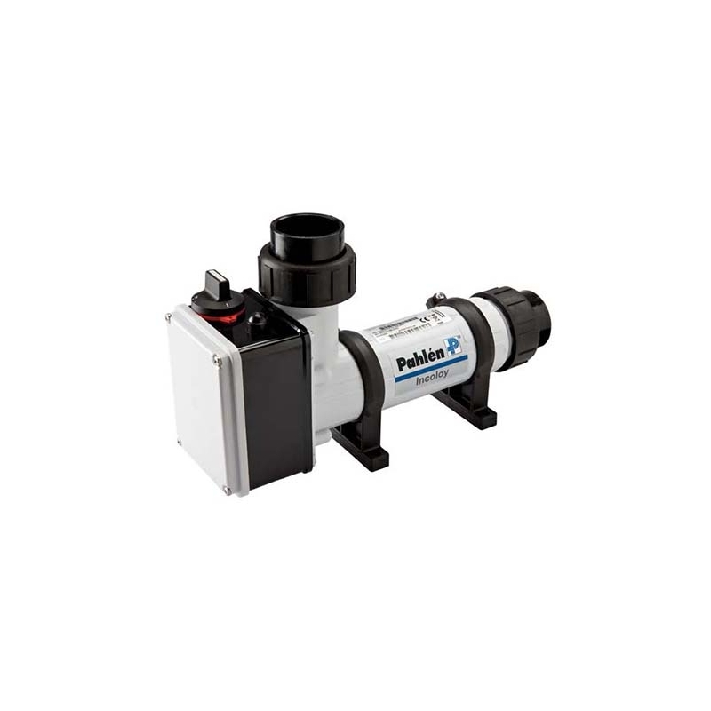 Ο θερμαντήρας φέρει ρακόρ σύνδεσης για σταθερή συγκόλληση σε σωλήνες Ø 50mm, καθώς και θερμοστάτη για τη ρύθμιση της θερμοκρασίας του νερού 0-45°C, με προστασία υπερθέρμανσης 60°C και διακόπτη ροής. Κατάλληλος για ιδιωτικές πισίνες μέχρι 100 m3.