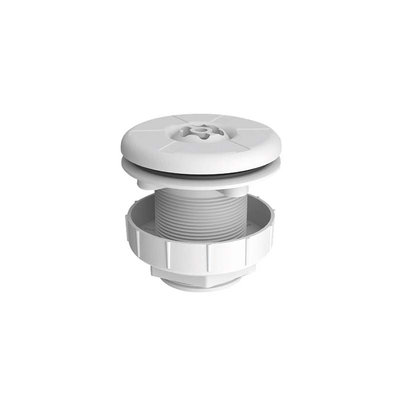 Εξάρτημα επιστροφής με ρυθμιζόμενη αντιπαγιδευτική μπάλα, κατάλληλη για όλους τους τύπους κατασκευών, ακόμη και για λεπτά τοιχώματα, με παξιμάδι γρήγορης στερέωσης. Για πισίνες με μεμβράνη / επένδυση, υαλοβάμβακα και επένδυση από σκυρόδεμα. Εξοπλισμένο με ένθετα με ορείχαλκο σπείρωμα για εύκολη και γρήγορη συντήρηση με την πάροδο του χρόνου. Σύνδεση κόλλας Ø50 mm ή αρσενικό νήμα 2".