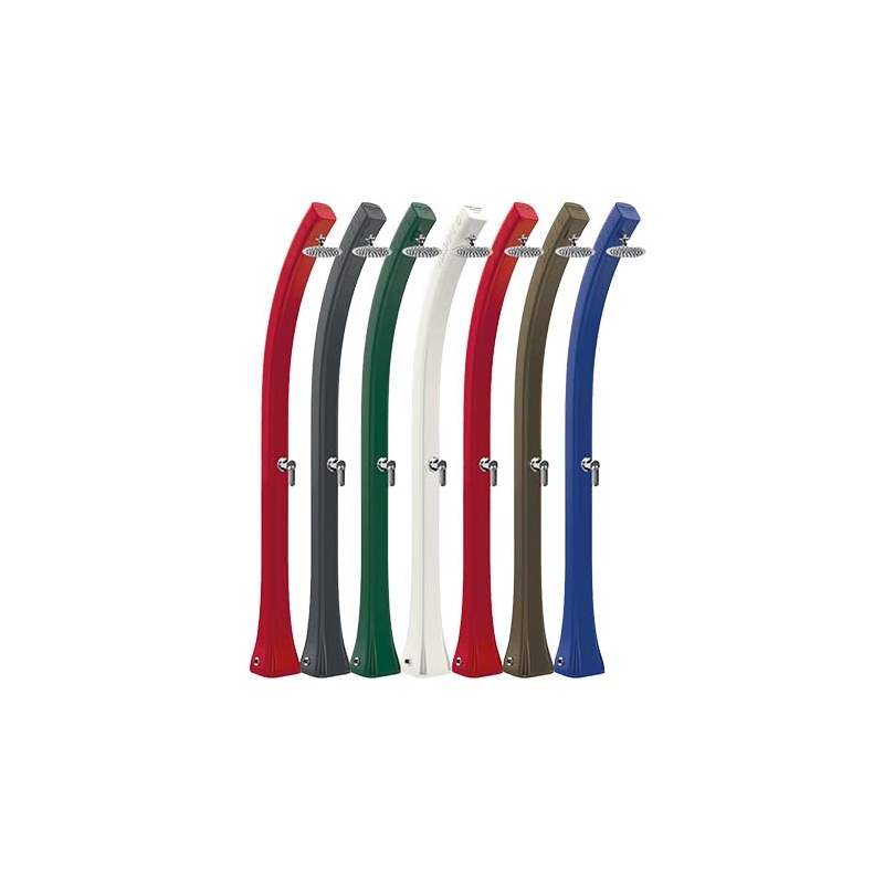 Ηλιακό ντους πολυαιθυλενίου με κλίση. Σχεδιασμός και παραγωγή από την Arkema Design. Μια σύγχρονη και λειτουργική λύση για χώρους πρασίνου και χώρους πισίνας. Ένα ντους χρωματισμένο στη μάζα και κατασκευασμένο από πολύ στιβαρό περιστροφικά χυτό πολυαιθυλένιο που προωθεί τη συσσώρευση ηλιακής θερμότητας και θερμαίνει γρήγορα το νερό που περιέχεται στο σώμα του ντους το οποίο λειτουργεί ως δεξαμενή.