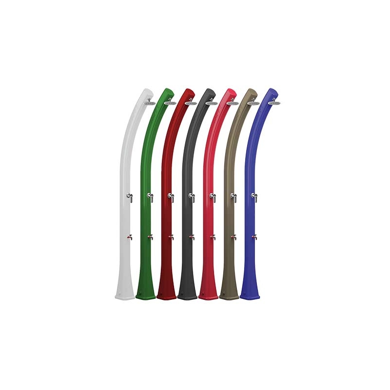 Ηλιακό ντους πολυαιθυλενίου με κλίση. Σχεδιασμός και παραγωγή από την Arkema Design. Μια σύγχρονη και λειτουργική λύση για χώρους πρασίνου και χώρους πισίνας. Ένα ντους χρωματισμένο στη μάζα και κατασκευασμένο από πολύ στιβαρό περιστροφικά χυτό πολυαιθυλένιο που προωθεί τη συσσώρευση ηλιακής θερμότητας και θερμαίνει γρήγορα το νερό που περιέχεται στο σώμα του ντους το οποίο λειτουργεί ως δεξαμενή.