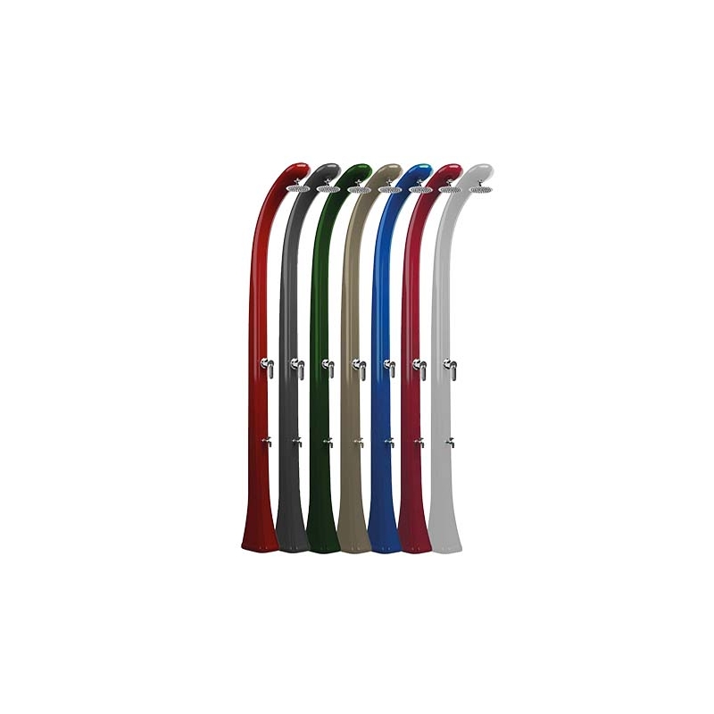 Ηλιακό ντους πολυαιθυλενίου με κλίση. Σχεδιασμός και παραγωγή από την Arkema Design. Μια σύγχρονη και λειτουργική λύση για χώρους πρασίνου και χώρους πισίνας. Ένα ντους χρωματισμένο στη μάζα και κατασκευασμένο από πολύ στιβαρό περιστροφικά χυτό πολυαιθυλένιο που προωθεί τη συσσώρευση ηλιακής θερμότητας και θερμαίνει γρήγορα το νερό που περιέχεται στο σώμα του ντους το οποίο λειτουργεί ως δεξαμενή.