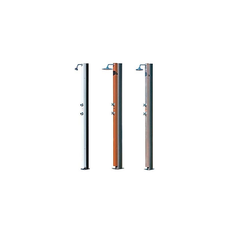 Hλιακή ντουζιέρα χωρητικότητας 30 Lt με μικτή βρύση για ζεστό και κρύο νερό.Κυρίως σώμα κατασκευασμένο από ανοξείδωτο ατσάλι AISI-304 & δεξαμενή κατασκευασμένη από αλουμίνιο.