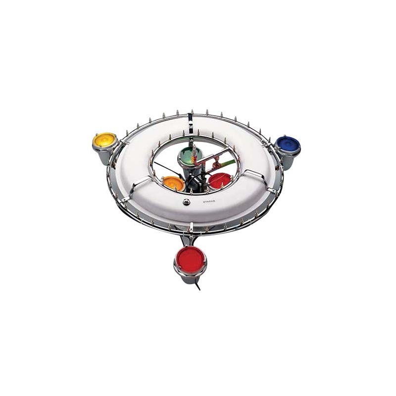 Adjustable smooth bores with 1/8″ ASB-180, placed every 10cm on the circular ring.