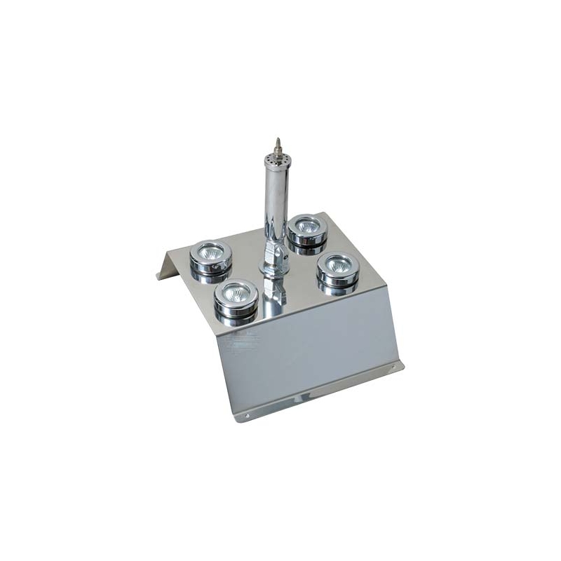 Complete fountain kits ideal for district and smart decoration.Each kit includes all the necessary fountain units to form a complete fountain ready for operation. These kits are structured on a rectangular-shaped base equipped with four light units and one fountain nozzle. The base is made of stainless steel, AISI-316. The fountain nozzle can be selected from a number of different nozzles.