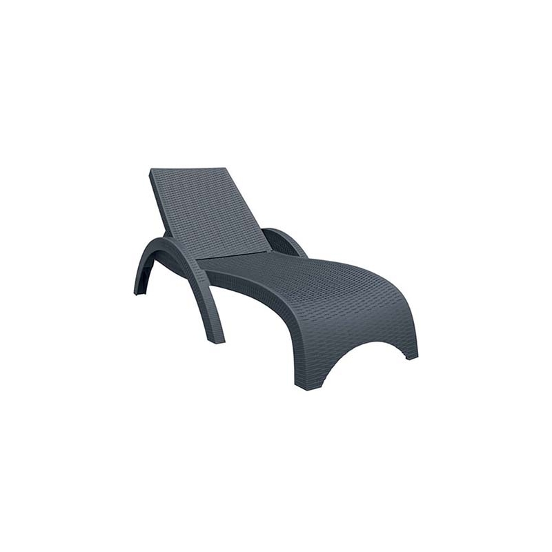 Wicker type sunbed with FIJI arms by Siesta made of high quality polypropylene with fiberglass reinforcement for absolute durability. It is stackable and has UV protection for maximum protection from the sun so that the colors do not change. Adjustable back, 5 adjustable small wheels on the hind legs for easy movement and non-slip soles.
