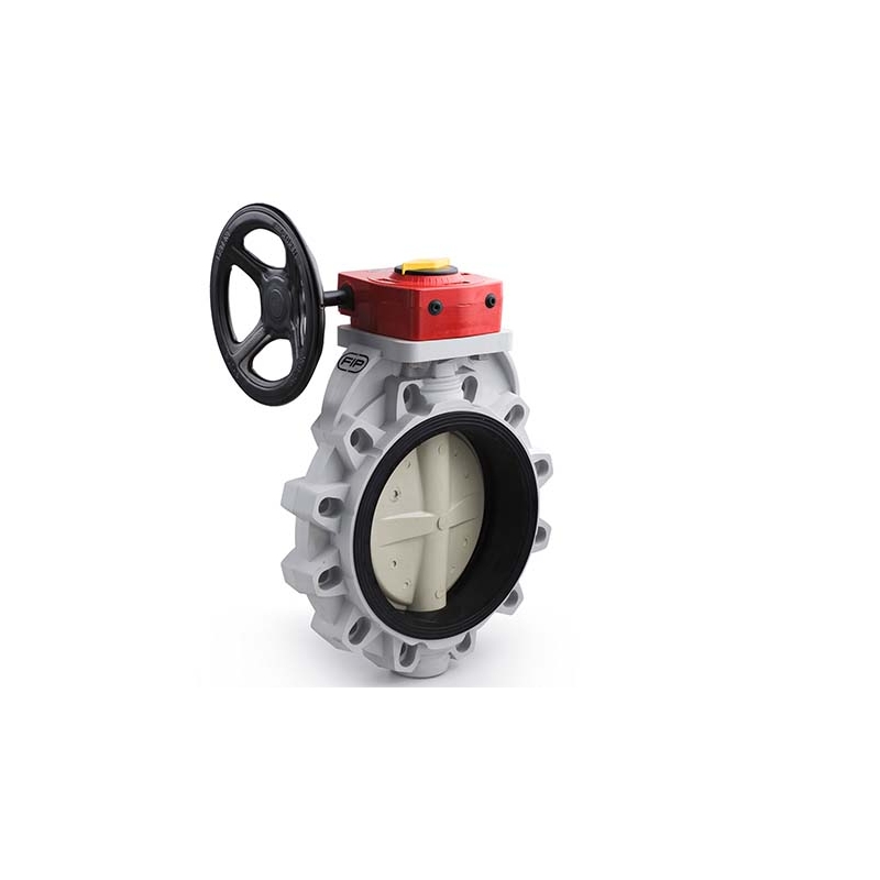 PVC-U butterfly valves. Two-way central butterfly valve FK with reinforced PP-GR body and PVC-U disc. Square section STAINLESS steel stem, fully isolated from the fluid, according to ISO 5211: DN 40G·65: 11 mm DN 80G·100: 14 mm DN 125G·150: 17 mm DN 200: 22 mm DN 250G·400: 27 mm. Can also be installed as a bottom drain valve or tank drain valve.