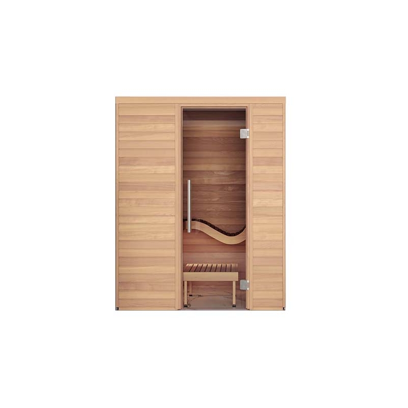 A habit that started in distant Finland and was established internationally for muscle recovery after intense training, recovery and detoxification of the body, through an extremely enjoyable and relaxing experience! The charm of this model is not only visual: excellent quality thermo-treated Aspen wood, lighting with infrared sensor switch activation, and wooden details pre-treated with sauna wax. Minimal door with elegant design. Available with metal or wooden handle.