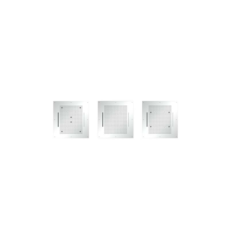 Square recessed ceiling shower head 700 x 700 mm. 4 water patterns: 1 rain jet, 4 mist jets, 1 tropical jet and 1 waterfall jet. Control through keypad for manual management of the different jets.