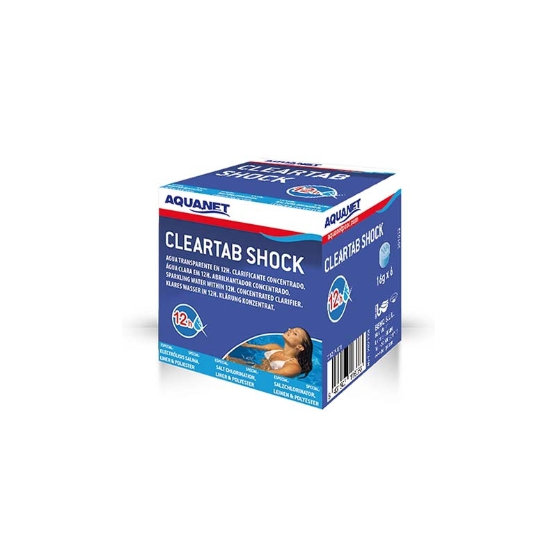 16gr tablet for shock treatment - rehabilitation water with high turbidity within 12-hours. Suitable for all types of filters. It does not change the ph, the alkalinity and does not cause satiety. Dosage: 2tabs 50m3 water (in the pre-filter) 6tablets/box